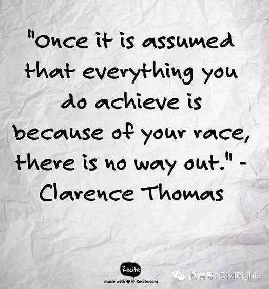 第七,多种研究证明不切实际的降低标准只会使社会怀疑这些少数族裔学生的真实水平,无论他们多么优秀。社会包括他们自己都会存个问号。数据也表明一些被照顾进去的无法胜任严格的学业要求,转而退学或选择容易的专业。毕业率反而下降。最高法院大法官托马斯说过,“一旦社会认为你的成就是因为种族原因,就没有出路了。”
