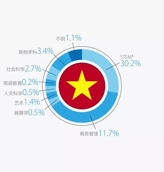 日报独家数据透视:中国留学生在美国都念什么专业 2015-08-27 姜逸男 北美留学生日报 文/姜逸男(日报见习记者) 制图/高量 眼看着八月即将过去,美帝新一轮的新生开学战即将打响。相信不论你在Top10还是在Top11~250,都可以看见国内的小伙伴,谁让我们天朝少年一直是赴美留学战队里的主力军。想知道同胞们都扎堆在哪些专业吗?想知道哪些专业可以让你顺利逆袭吗?快跟着日报君一起来扒一扒。 赴美留学人数最多的十个国家 根据IIE(Institute of International Education)发布的数据,2013/14学年共有274,439位中国留学生赴美留学,占赴美国际留学生总数的31%。这个数据告诉我们,在美帝,每100个接受高等教育的人中有4个是国际学生,而这4个人里肯定有一个是说中国话的。尽管印度老大哥和我国的人口基数不相上下,但在2013/14的赴美留学人数上,我们甩开他们十多万人。 中国赴美留学人数历年增长图 自2009/10学年后,中国赴美留学生的增长率呈现递减状态。对比2012/13学年21.4%的增长率,2013/14学年中国留学生赴美的增长率只有16.5%。 中国赴美留学学生学历分布图 从学历分布上看,本科生和研究生各占四成,手握OPT的工作党占一成。 2013/14学年中国赴美留学生专业分布图 2013/14学年,我们有41.6%的小伙伴投向STEM(Science, Technology ,Engineering and Math)的怀抱。你觉得这比率高吗?NO!看好了,印度人里去学STEM的占了78.6%,伊朗更是高达79.6%。这可是八成人了呀,所以你还觉得我们的四成算多吗? 2013/14学年印度赴美留学生专业分布图 除此之外,还有28%的同胞进入Business/Mgmt专业,估计这也是你无论走到哪里的商学院,都能找到一大波自己人的原因。在对这个专业的选择上,中国人又不是比率最高的——越南人选择读这类专业的占了37.5%。 2013/14学年越南赴美留学生专业分布图
