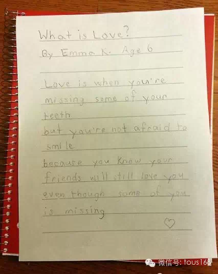 爱就像一个小老头和一个小老太太,即便了解对方的一切,却仍然是非常好的朋友。——Tommy,6岁