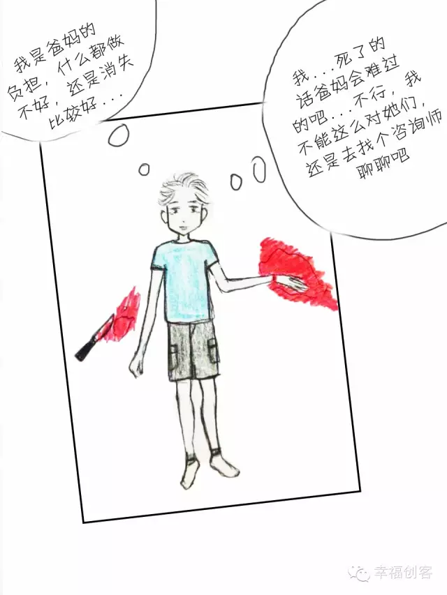 相反的,还有些孩子会停下来: “我死了爸爸妈妈会难过的,不行,我不能对爱我的爸妈这么做,明天还是去找个心理咨询师聊聊吧。”